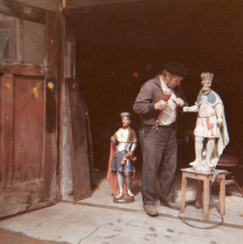 Ernest Steiner rénove des statuettes (1968).